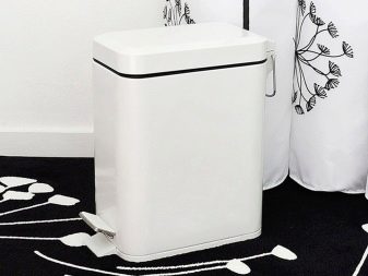 Enhance the functionality of the bathroom with trash containers.They are made of colored plastic, due to which the products are characterized by mobility, low weight, ease of care. The design of the trash cans may vary. Usually these are compact models with an opening lid of a movable type and a varied texture.
