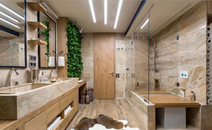 - bath in eco style It will look more expressive if its accents become accessories made of wood.
