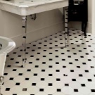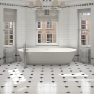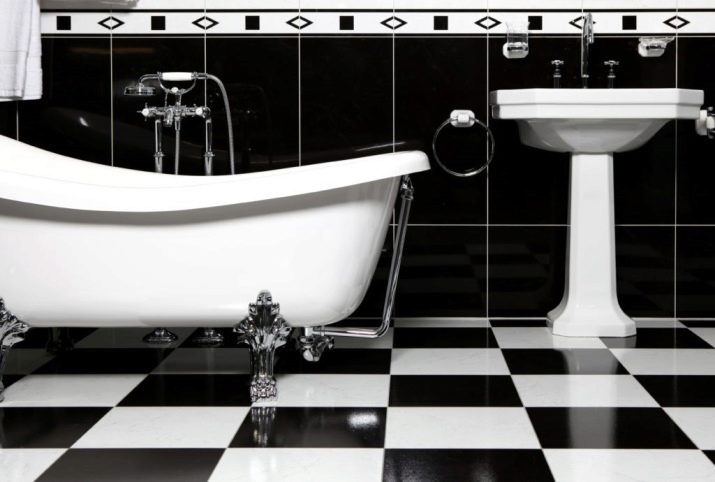 It is also traditionally used as a flooring in a black and white bathtub. ceramic tile. Its floor version is valuable for its absolute resistance to moisture and high mechanical strength. But you should choose a material with minimal slip.