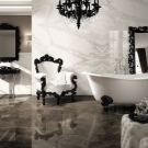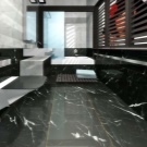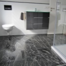 If sufficient funds are available, it can be used in the bathroom. natural stone floor. Such a step will achieve a feeling of luxury and pomp. Mainly use marble without polishing. Stone coating is strong and durable. In addition to the high price, the difficulty is that it is impossible to make the right choice of stone without special knowledge.