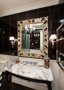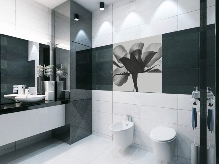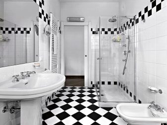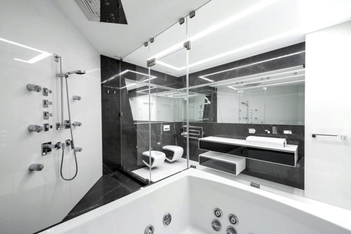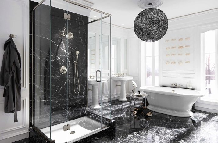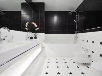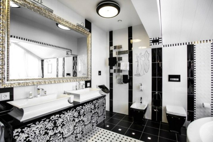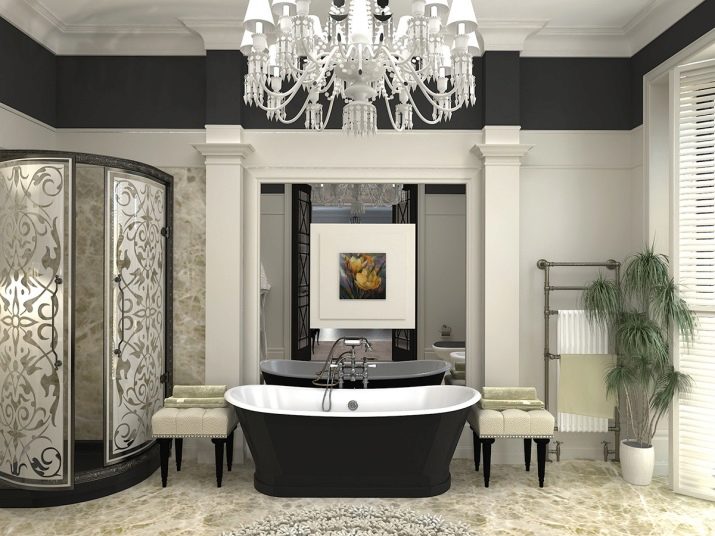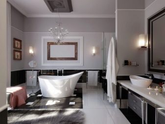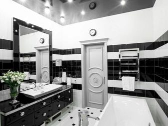 A separate conversation deserves a black and white bathroom in the spirit of neoclassicism. This approach creates a solemn and benevolent mood, but at the same time it is not too intrusive and tiring. Such decisions are chosen by those who want to comply with modern design trends, while not breaking away from the principles of classical design. The setting harmoniously interweaves modernist and classic notes; but their contradiction is categorically unacceptable.