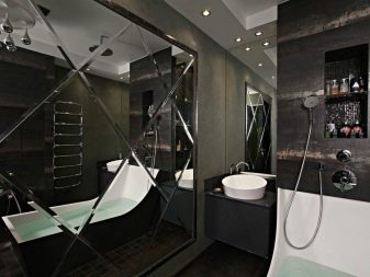 The more intense the lighting, the better the interior of the bathroom will look. Spotlights are usually placed above the bathroom, and the washbasin is illuminated with a sconce. To use less lighting, you can use mirrors - they will add light. If you have any difficulties, it is better not to take risks and consult experienced designers.