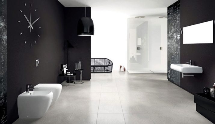 First you need to deal with furniture. It should not be too dark. The best option is when black and white blotches are combined with each other. Sometimes completely black furniture or plumbing is also used. However, in this case, other parts of the room should be very bright, the only way to compensate for the negative emotional effect.