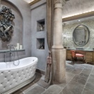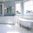 - As for the spacious rooms - here you can act on the basis of personal preferences, but when placing it is necessary to take into account, first of all, comfort. Therefore, it is recommended to place the items necessary for taking a bath in the immediate vicinity of it.