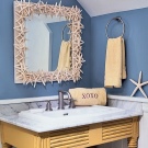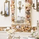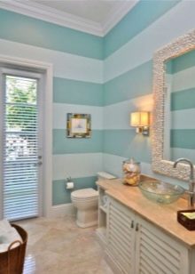 Often used to decorate such a room seashells. They create frames for mirror cabinets or other decorative elements, and they are also actively used in the design of walls and baseboards. But this type of decoration can be too complicated for independent execution, therefore most often, shells can be seen on the walls of the bathroom in the form of a beautiful print on ceramic tiles.