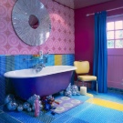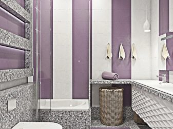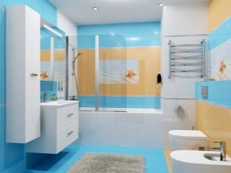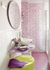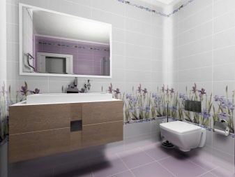 - Great for the bathroom blue or lilac shade ceramic tiles. They can be harmoniously combined with each other and, complementing with lighter colors, lay out the original ornament. In combination with these shades, you can use a cold yellow tone, bright pink in small quantities, gray, blue and emerald colors.