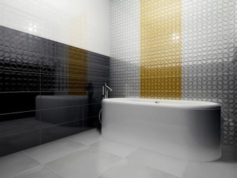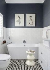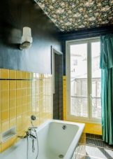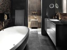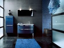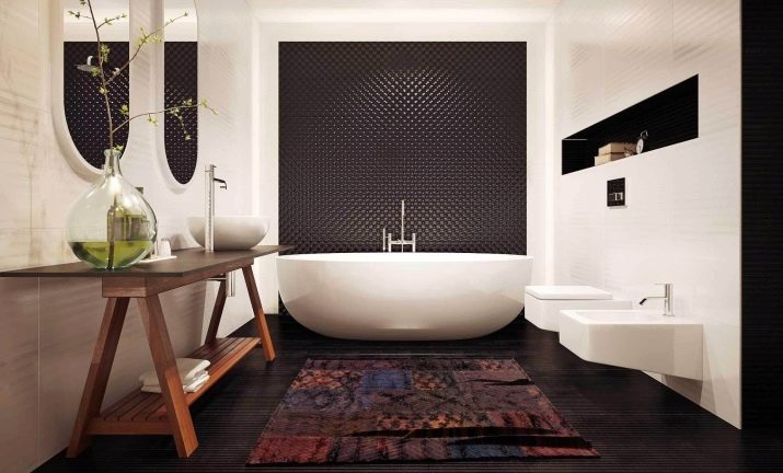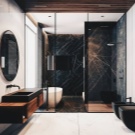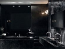 - In rare cases, the interior of the bathroom is used black, dark gray, dark purple, dark brown and dark blue shadescomplemented by a light glitter effect. Ceramic elements of these colors are used for laying out floor coverings and for small original ornaments.
