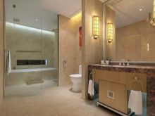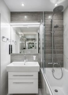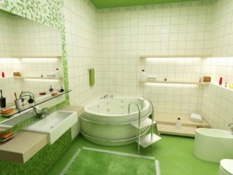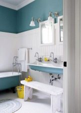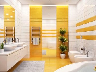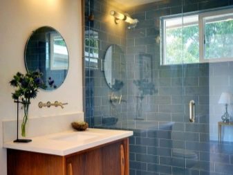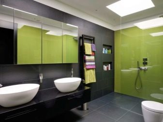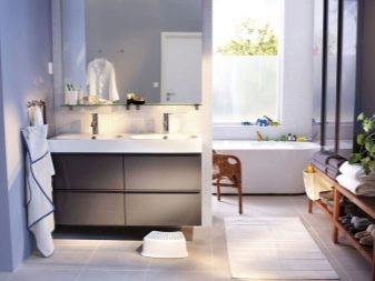 In addition, we can distinguish several more basic features inherent in the modern interior of a room intended for the adoption of water procedures. For example, the presence of a large number of light shades in the design. Dark walls look very gloomy and create a twilight atmosphere in the room, regardless of how many light sources are used.