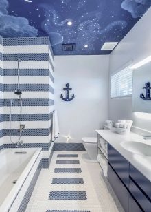 Stylistic decisions play an equally important role, since picking up shades and successfully combining them is not enough, you need to effectively present it and supplement it with characteristic details. Perhaps the marine style can rightly be called perhaps the most popular direction in the design of bathrooms, as many professional designers and ordinary people believe that any water theme is the perfect solution for such rooms.