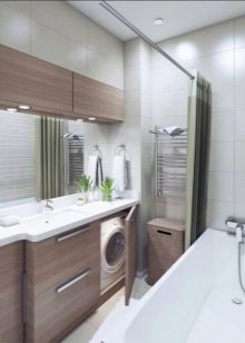 - In the bathroom, combined with the restroom, which has the standard dimensions for apartments in the "Khrushchev", everything is a little simpler, since the space allows the addition of the interior to small items of furniture with hinged mounting methods.