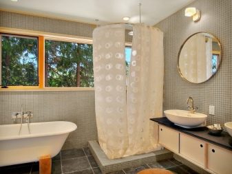 Some products are made of durable material that does not allow air to pass through, so in such cases the curtain will serve as thermal insulation, keeping heat in a certain area, which contributes to even more comfortable adoption of water procedures.