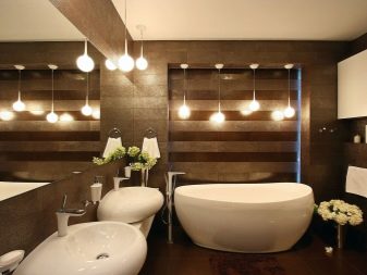 Lighting in the bathroom plays a rather large role, since many women spend a sufficient amount of time gathering and applying cosmetics in this particular room, so it is recommended to consider the location of the lamps no less carefully than the entire interior. For a small room, it would seem that enough central lighting and a small power device, but with this arrangement, the corner parts will remain unlit, which will affect personal comfort.