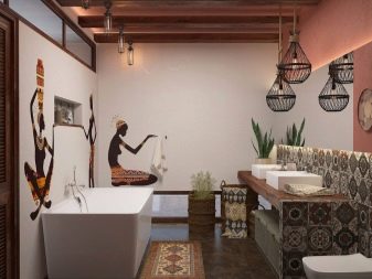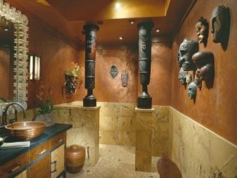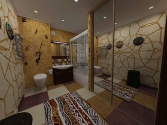 African style in the interior Such a room is something unusual, unique, original and incredibly stylish. This trend is characterized by a predominance of classic brown and red-brown shades, the presence of various animal prints, which are sometimes used to decorate even plumbing elements, as well as decorating minor details with darker shades.