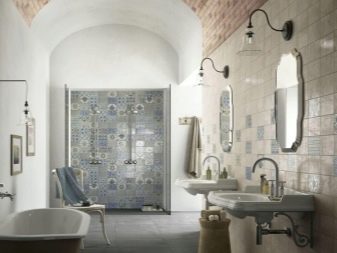 The interior of a modern bathroom involves a combination of comfort and original stylistic solutions. For example, it has long been unfashionable to use a large number of ornaments and decorative elements, but such solutions are quite acceptable and look very beautiful in combination with plain wall tiles.