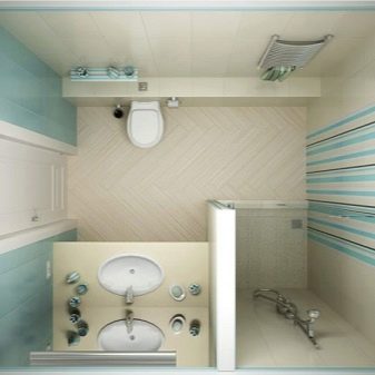 - In a small bathroom, separate from the restroom, it is unlikely to fit a lot of furniture, so it is recommended to do only the most necessary. It is necessary to arrange objects as compactly as possible and best of all in the same part of the room where the sink is located.
