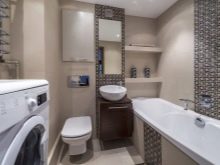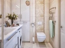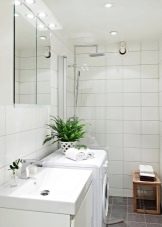 In a small bathroom it is quite possible to create a space that will contain all the necessary things and appliances. But there are also features. You will have to choose a small bathtub or change it to a shower cabin. You need to figure out how to place the sink, mirror and shelves. Well, and where without a washing machine! She will also have to look for a place.