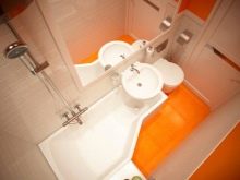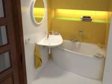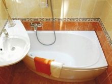 A standard bathtub is about 2 square meters in size. Agree that this is half or even the full area of your premises. Therefore, a full-sized bathroom cannot be marked in a tiny space. A good way out of the situation will be the installation of a figured or corner bath.
