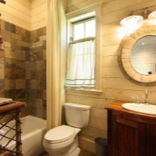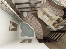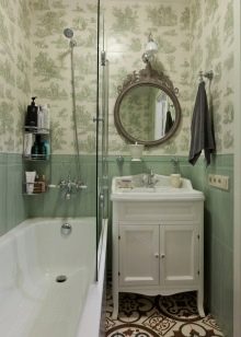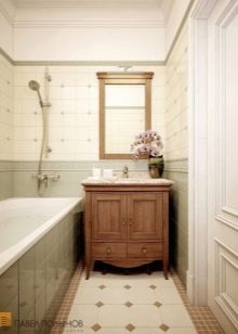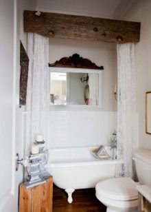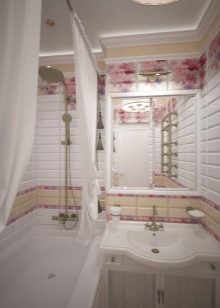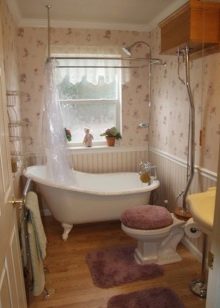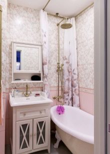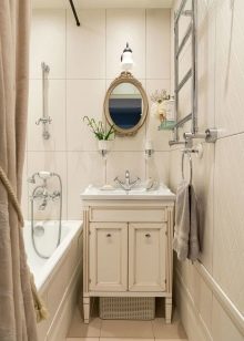 The rustic style comes from France and is reflected in the interior. It is simple, uncomplicated, thin and almost weightless. To create this in a small bathroom you will need light-colored finishing materials, complemented by modest floral patterns in pastel colors. Nothing should get out of this demand, scream and demand attention. Furniture and plumbing should also be in the style of "Provence". No "curls", gilding and mirror coldness.