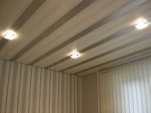 PVC on the ceiling - It is not only beautiful, but also convenient.If the neighbors from above flood you, then the material will suffer less. It can be simply removed, dried and returned. Fans of original solutions for the ceiling can offer one more option - suspended rack structures. They look easy, not burdensome, do not “steal” space.