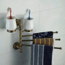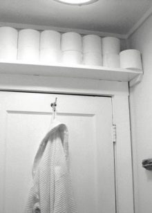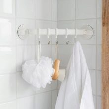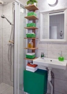 Textiles can be placed on hangers. To do this, use the vertical space in the part that you have left free, excluding the space above the toilet and bath. Things should not interfere with free passage. If no idea arises, remember how this problem was solved in the close "Khrushchevs" of the times of the USSR - hooks were attached to the door from the inside. On these you can store both small towels and large bulky bathrobes, which take up a lot of space.