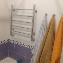The most practical owners combine two in one - combine a heated towel rail and a hanger.