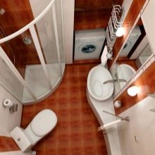 - Feel free to combine the bath and shower Choose corner solutions and maximize vertical spaces. Combine the rest with each other, for example, the washing machine can be installed in the same niche with a sink under one table.
