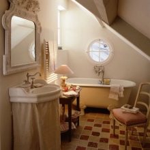 The sink for this style is better to choose in the form of a "tulip", and place the mirror in the frame.