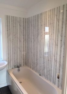 Panels in a small bathroom with low ceilings are recommended to be fixed vertically. If the ceilings are high and the area is small, then try placing the panels horizontally - this will visually expand the walls. The best option for a small room are considered to be panels with a small pattern, since a large one "hides" the space.