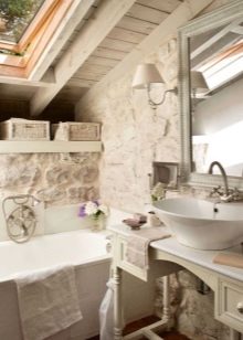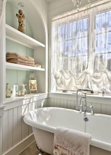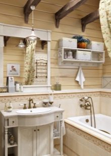 A bathroom in the Provence style will help create modest hangers and 1-2 hanging lockers. Brightness can be given to bolder colors of a towel and a bathrobe, floor mats with fruits or flowers.