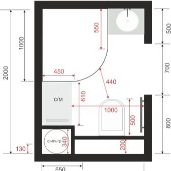 Design features of a small sanitary room mean the right color and lighting solutions that will help visually "push" the space. In order to fit everything you need, you should immediately imagine the volume of everything, draw up a drawing taking into account the dimensions of the bathtub, toilet bowl, and if the unit is combined, then the washing machine, as well as the sink.