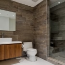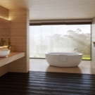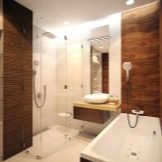 - Minimalism - In this style, usually one or two colors. It is laconic and concise, often it is the wood floor that distinguishes this style in the decision of the bathroom.