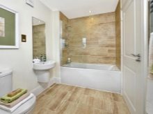 Not even strict care, but the price of future repairs scares apartment owners. In this case, imitation will come to the rescue: tiles or linoleum with a wood texture can visually recreate the dream bathroom.