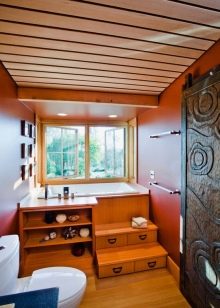 If you are ready to come to terms with these disadvantages for the sake of attractive advantages, it's time to act and choose a specific design. Although you can go and workarounds: use the usual bathroom materials, but decorated in wood.