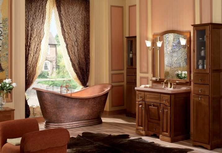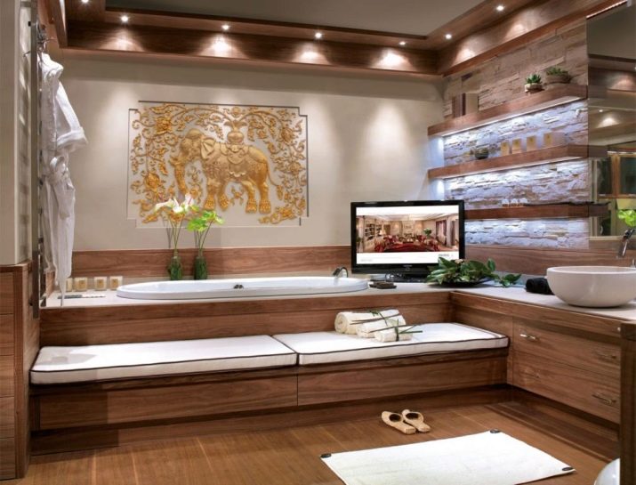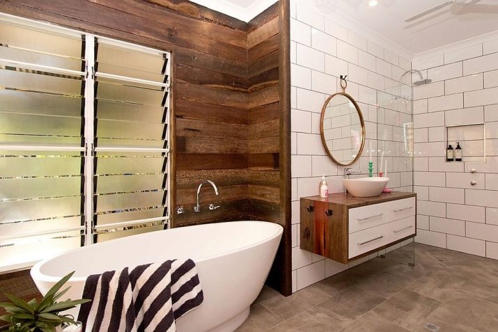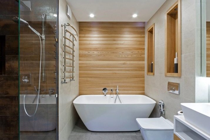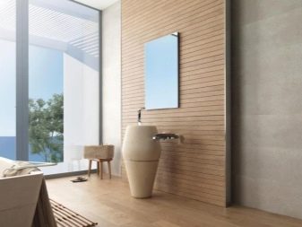 It was once thought that a more impractical material than wood could not be found for decorating a bathroom. But these considerations are now considered obsolete. Modern methods of working with wood allow you to give the material characteristics that are compatible with moisture.