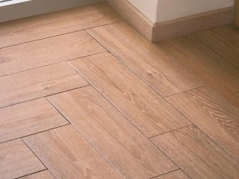 This material perfectly imitates tree species. It is durable and resistant to temperature shocks. The porcelain stoneware contains white clay, as well as sand with coloring substances of natural origin. On the floor, rectangular porcelain tiles and embossed texture will seem like real wood. In appearance, it can resemble a high-quality parquet board.
