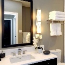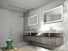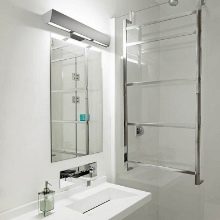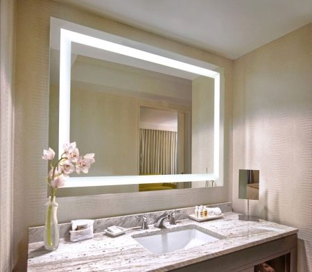 To obtain optimum brightness for hygienic and cosmetic procedures, it is necessary to ensure a degree of diffusion of light up to 400 lux. Lighting should be uniform, not annoying. To maintain the reflection realism, it is necessary to take lamps of a neutral color. The optimum temperature is from 4000 to 4200 K.