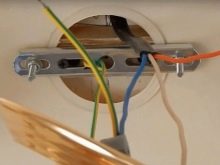 If the appliance is a consignment note, the bracket is first mounted. To do this, use hardware. After that, the cable is connected to the terminals (by color). Then the wiring is carefully removed into the hole. The device body is superimposed and fixed. If the lamp is heavy, it is additionally reinforced with stiffeners.