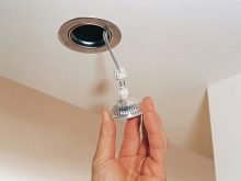 If used halogen lamp, power wires and terminals are also involved. The case is mounted by springs. The lamp is inserted into the cartridge and fixed with a yoke. The latter should be included. It is important to remember that with such lamps you can only work with gloves on..