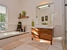 It is relative free style. Those people who prefer it usually choose bathroom headsets that come with a mirror with a shelf or even with an attached cabinet. Such models are usually illuminated by point instruments built into the visor. Some products have stationary or moving lights on metal poles. Well, of course, there are LED options. It all depends on the taste of the owners of the house.