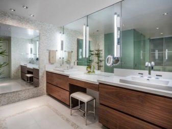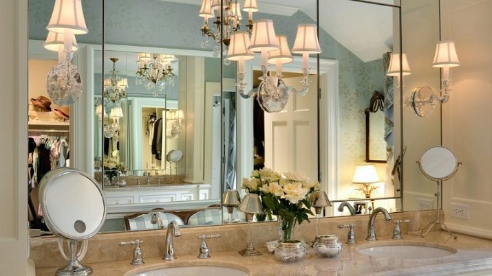 For make-up mirrors, large lamps with frosted glass are installed on both sides. In the bathrooms, such models are rare, but still it happens.