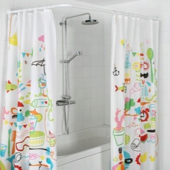 The main feature of such curtains is that they are ideal for rooms in which the shower or bath is located in the corner and has the form of a hydrobox or a triangle. In addition to curtains, moving parts must also be included in the design of the corner bath - they are installed along a curved side. For acrylic bathrooms, for which fencing is provided, the curtains can be replaced with swing doors.