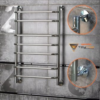 Water heated towel rails for bathrooms are made of stainless steel, cast iron, aluminum, copper, brass and ferrous metals. Depending on this, the quality and strength characteristics of the products differ. For instance, high carbon zinc alloy steel Differs in high coefficient of thermal conductivity and resistance to rust. Products stainless steel reasonable in price, practical and durable.