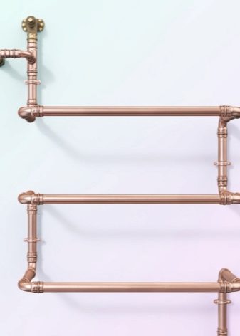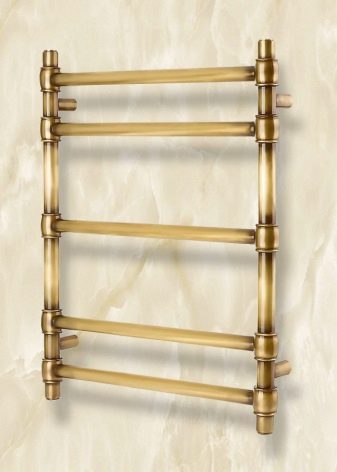 Wall mounted towel dryers non-ferrous metals (brass and copper) considered rare. Brass, despite its excellent heat conductivity, does not have a long service life. Copper, by contrast, is characterized by long-term operation. However, such a coil is not cheap.