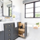 You can use black and white shades as the main ones, but they need to be diluted with something bright. For example, a shower curtain or a foot mat.