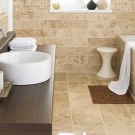 - If you do not like the feeling of sterility and cold, then pay attention to warm shades: light brown, coffee with milk, sand and others.A bathroom in these colors goes well with standard white fixtures. You can supplement it with natural or artificial flowers in white pots.