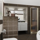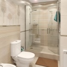 - A good solution would be use of a glass wall or screenprotecting the shower or bath from the rest of the room. This will help to avoid unwanted splashes and reduce the time for cleaning the bathroom. In addition, such zoning will create more options in order to beat the space with various design solutions. If your bathroom already has various niches and partitions, then do not get rid of them.