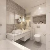 - Calm shades of gray they won’t give the coldness that white can give, but they will also look good with bright accents. So, the combination of gray and orange, gray with green, gray with red and other saturated colors will help make the design of the bathroom closer to the modern style.