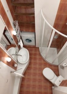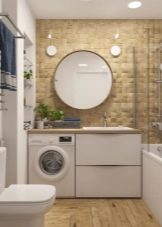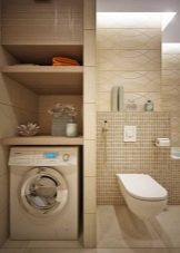 - Secondly, a combined bathroom with a washing machine reduces the risk of flood and flooding of the lower floors, as often in the bathroom provides increased waterproofing.