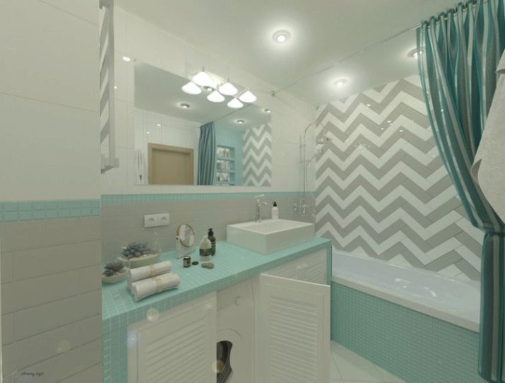 - Very popular color for the bathroom - blue, blue, sea wave and all shades associated with water. When using them, you should take care that the bathroom does not look too cold and lifeless. All shades of the color of light summer greens will look good - they will refresh the space and will look appropriate in combination with floral prints.