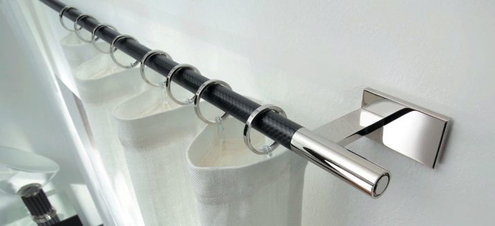 The durability and appearance of the barbells for curtains primarily depends on the material from which they are made.Today, when creating eaves for bathrooms, about 5 different materials are used, each of which has individual indicators of strength and reliability.